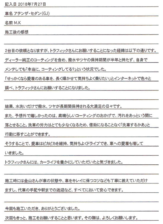 元々、ディーラーにてコーティング施工されて、綺麗に乗られていた車でしたが、