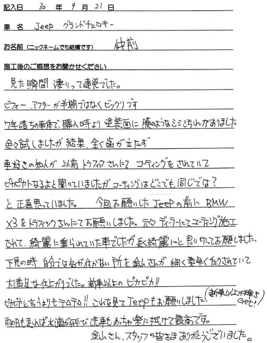 これを見てjeepもお願いしました。(新車以上の輝きGet!)